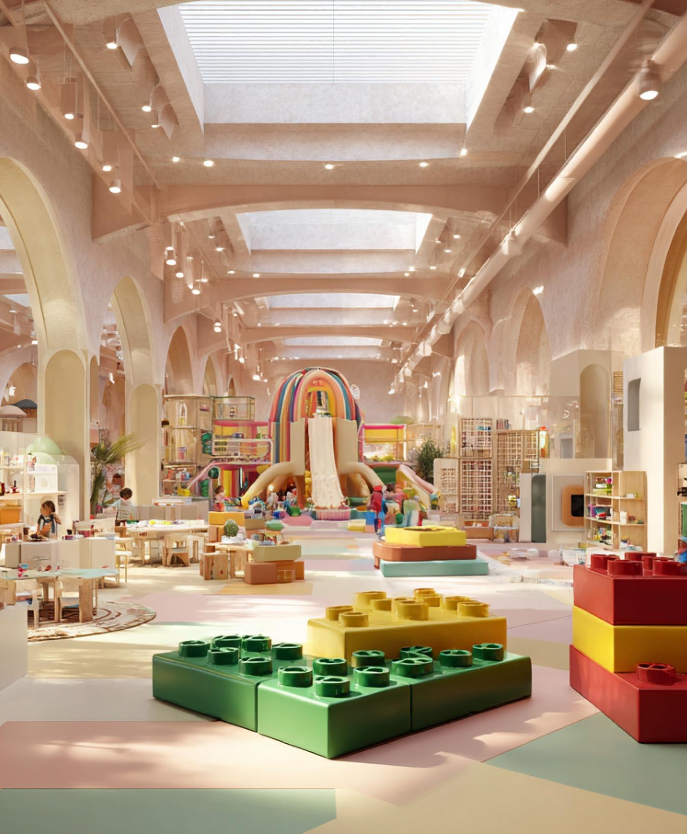 A playful wonderland for kids aged 2–6, with colorful inflatables, art & crafts corners, and a giant LEGO zone — pure childhood magic!